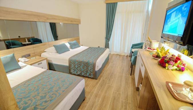В номерах представлено: индивидуальный/центральный кондиционер (15.06 - 15.09 - 24 часа, в другое время, в зависимости от погоды), спутниковое ТВ с российским каналом, музыкальный канал, мини-бар (вода и безалкогольные напитки бесплатно, ежедневное пополнение), прямой телефон, Wi-Fi (платно), ванна или душ, фен, сейф (платно), балкон, доп раскладная кровать по запросу.