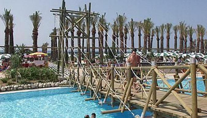 Он имеет самый большой бассейн на всем Средиземноморском побережье. На территории отеля есть множество водных горок, пиратский корабль и собственный торговый центр. Курортный ресорт не только большой, но и очень красивый. Он находится в тихой голубой бухте с широким песчаным пляжем и окружен живописными лесами Соргун. Современный дизайн в сочетании с тропической растительностью подарит вам ощущение настоящего праздника.
