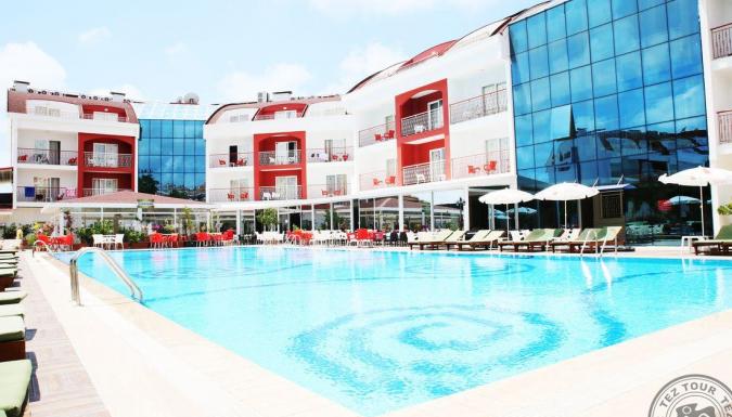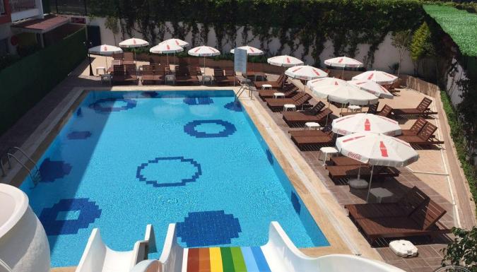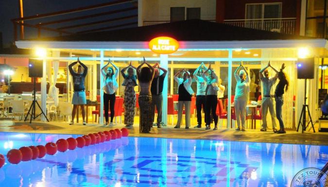 магазины, 2 водных горки: 1 для взрослых, 1 детская, можно посетить бесплатно турецкую баню, спа-центр (платно), 2 открытых бассейна, у бассейна зонтики, шезлонги, полотенца предоставляются бесплатно