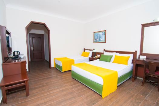 Сейф: в номере, платно; пол: керамическая плитка (ламинат), Интернет: Wi-Fi, платно, душ, телефон, фен, балкон, уборка номера: ежедневно, кондиционер: индивидуальный, телевизор (русские каналы), смена белья: 3 раза в неделю, мини-бар (в день заезда – вода, бесплатно).