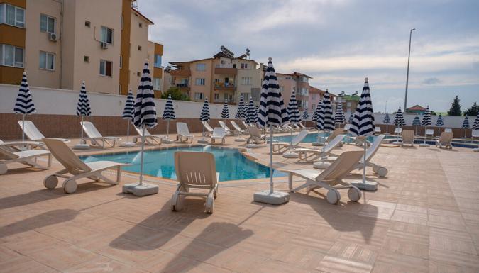 У бассейна зонтики, шезлонги, матрасы: бесплатно.