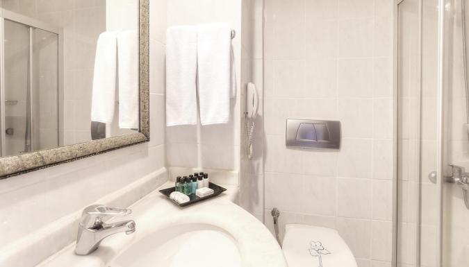 Кондиционер, ванна, спутниковое телевидение, телефон, мини-бар, фен, балкон, сейф в номере - платно.