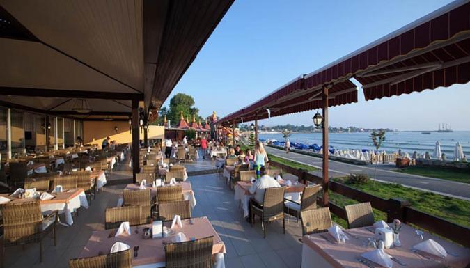 Шезлонги, зонтики - бесплатно, пляжных полотенец нет.