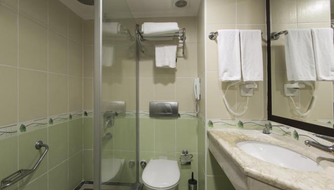 Индивидуальный кондиционер, спутниковое ТВ, мини-бар (только вода), прямой телефон, ванна, фен, сейф (платно), балкон, дополнительная кровать (по запросу).