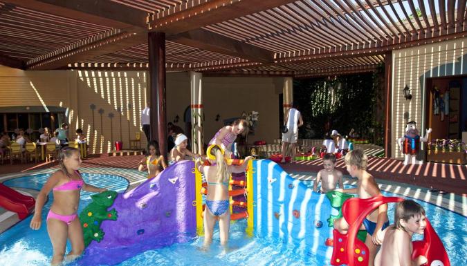 Кроватка, по запросу, детская анимация на русском языке, мини-клуб для детей от 4 до 12 лет, тинейджер-клуб для детей от 13 до 16 лет, 2 открытых детских бассейна, детская площадка, игровая комната, детское меню, в ресторане предоставляются детские стулья, няня (платно), по запросу.