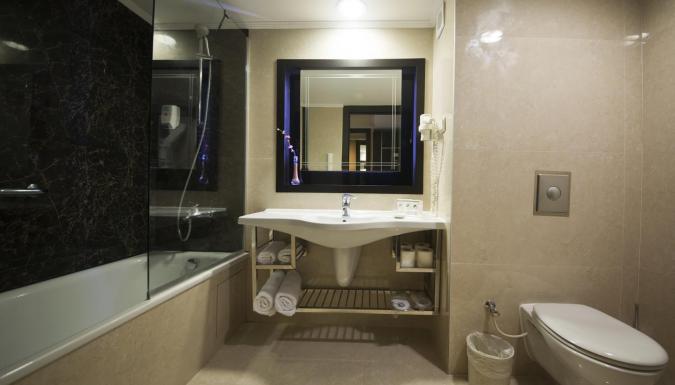 Центральный кондиционер (работает в зависимости от погодных условий, в определенные часы), мини-бар (вода, безалкогольные напитки, сок и пиво бесплатно, ежедневно пополнение), спутниковое ТВ с российским каналом, музыкальный канал, сейф (бесплатно), прямой телефон, ванна или душ, фен, балкон, доп кровать по запросу.