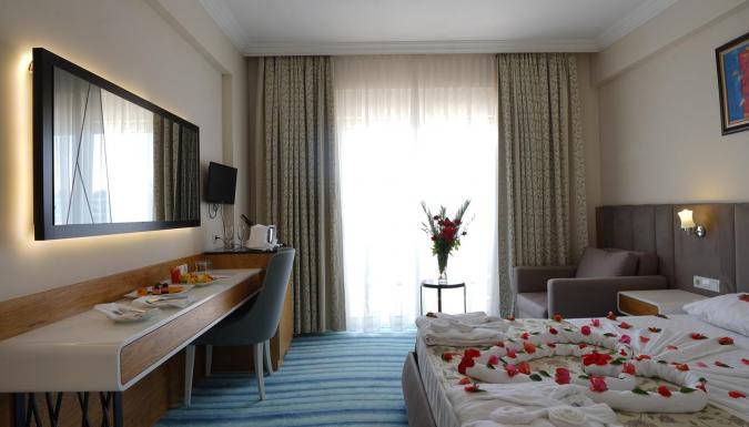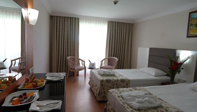 Ванная комната с ванной, телефон, сейф (платно), мини-бар (платно), спутниковое ТВ, интернета в номерах нет, фен, индивидуальный кондиционер, балкон. Все номера с видом на море, бассейн, горы или сад.
