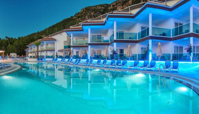 Отель расположен в горах и окружен со всех сторон сосновым лесом. Находится в 60 км от аэропорта Даламан и в 13 км от Фетхие. Состоит из комплекса 2-х и 4-х этажных корпусов.