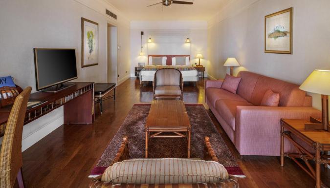 Индивидуальный кондиционер, мини-бар (платно), спутниковое ТВ с российскими каналами, музыкальный канал, радио (по ТВ), прямой телефон, интернет (бесплатно), сейф (бесплатно), ванная комната, фен, халат и тапочки, балкон или терраса.