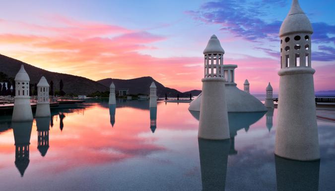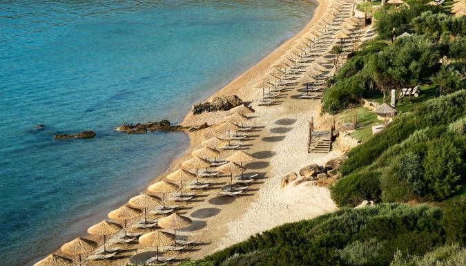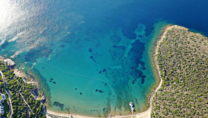 Собственный песчаный пляж (расстояние до пляжа приблизительно 1 км). Курсирует шаттл на пляж. Протяженность пляжа составляет 300 м. Шезлонги, зонтики, матрацы, пляжные полотенца - бесплатно. Заход в море - песок, пирс. Душ, спасатель на пляже, кабина для переодевания, бар на пляже (платно).