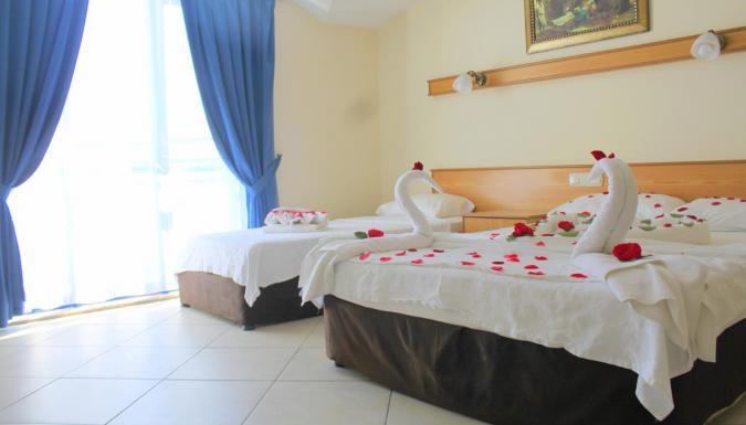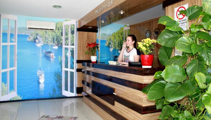 Отель расположен в центре п. Кемер. Аэропорт Анталии находится в 60 км от отеля.