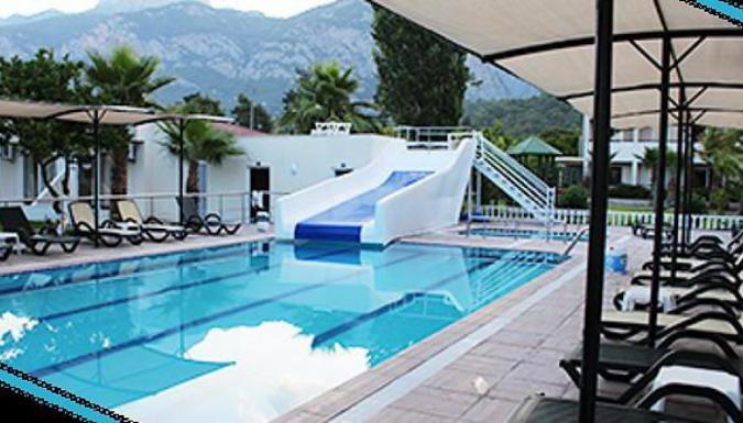 Расположен в поселке Бельдиби, в 15 км от города Кемер, в 300 м от моря. Расстояние до аэропорта - 40 км.