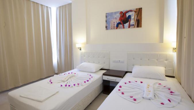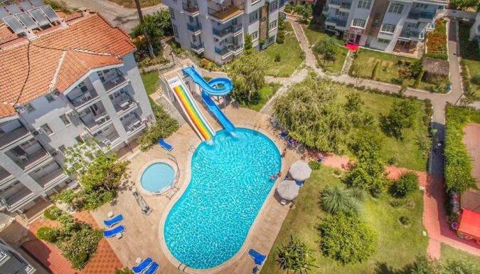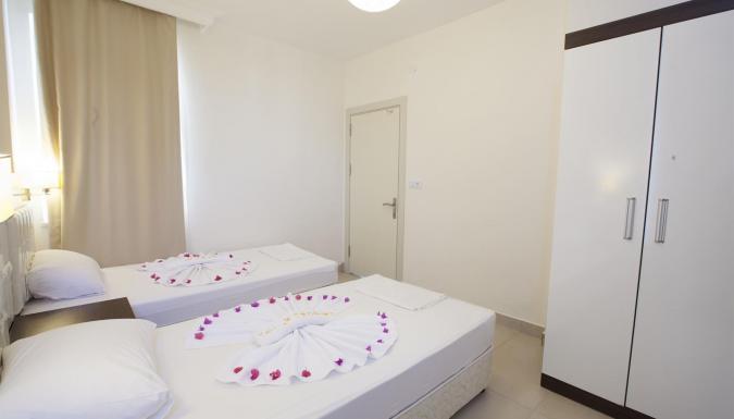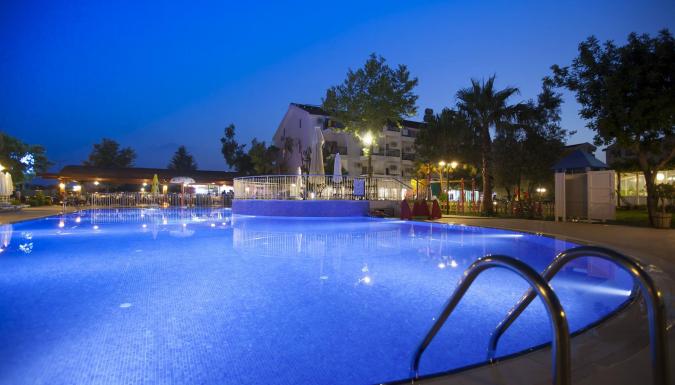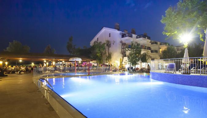 Отель расположен в п. Манавгат, в 1 км от центра г. Сиде. Международный аэропорт г.Анталья находится в 64 км от отеля.
