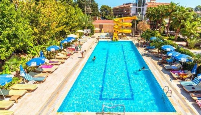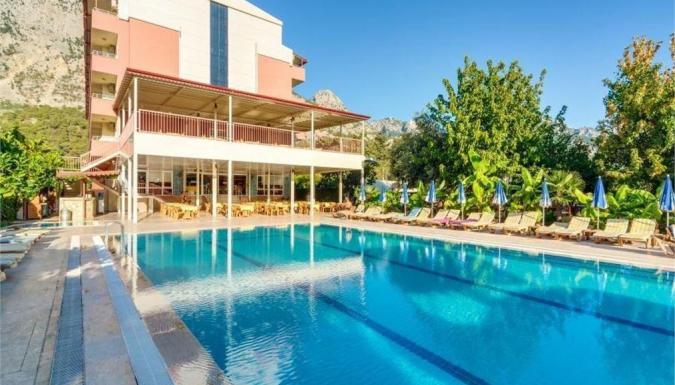 Отель в 40 км от аэропорта г. Анталья, в 15 км от г. Кемер, в поселке Бельдиби, в 100 м через дорогу от собственного пляжа.