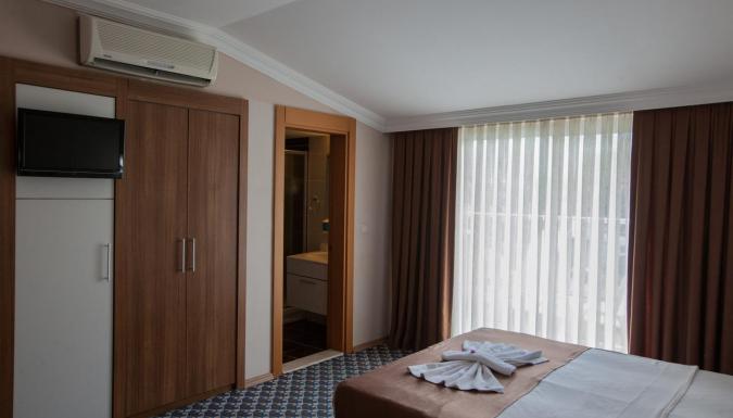 Отель в в 45 км от аэропорта г. Анталья, в 9 км от г. Кемер, в поселке Гёйнюк, в 1000 м от собственного пляжа.