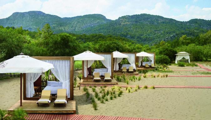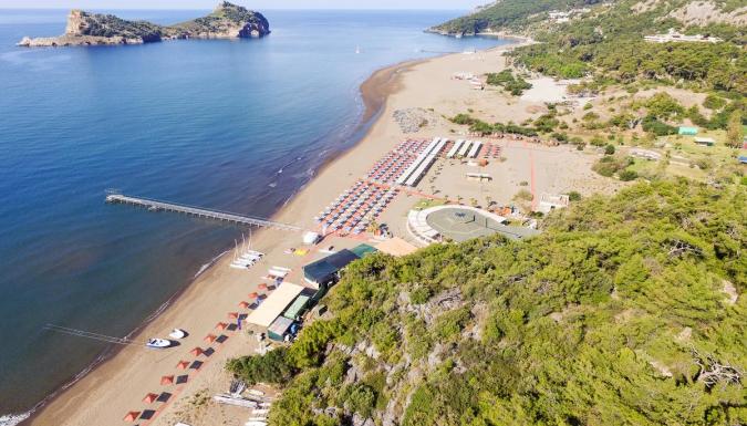 Собственный песчаный пляж находится рядом с отелем. Протяженность пляжа составляет 200 м. Деревянная платформа. Шезлонги, зонтики, матрацы, пляжные полотенца - бесплатно, смена полотенец - платно. Душ, спасатель, кабины для переодевания. Заход в море - песок. Павильоны на пляже - платно.