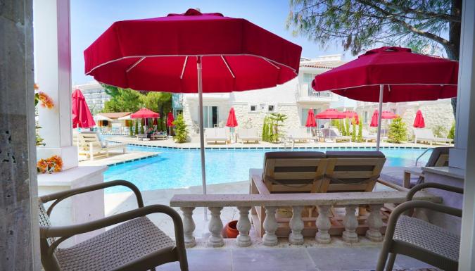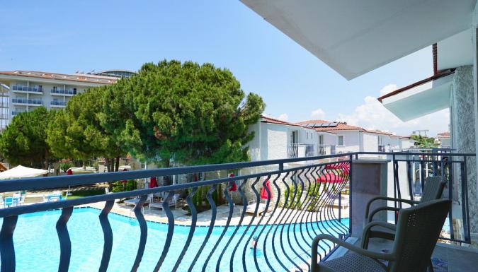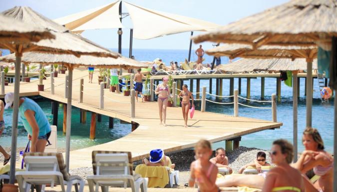 Собственный песчано-галечный пляж находится рядом с отелем. Протяженность пляжа составляет 250 м. Шезлонги, зонтики, матрацы - бесплатно, пляжные полотенца - по карточке 1 раз в день. Заход в море - песок, галька, деревянный пирс (пирс работает в летний период с 01.05 по 15.09). Душ, кабинки для переодевания, спасатели на пляже, бар на пляже (10:00-17:00). Пляжные шатры "Lyra cabana", платно, по резервации. Курсирует шатл на пляж - в определенные часы.