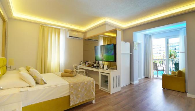 В номерах представлено: центральный кондиционер, мини-бар (пополняется ежедневно безалкогольными напитками и пивом), электронный сейф (бесплатно), набор для приготовления чая/кофе, LCD TV, спутниковое телевидение,Wi-Fi (бесплатно), ванная комната с душевой кабиной/ванной, фен, зеркало для макияжа, раскладное кресло (можно использовать, как доп. спальное место для ребенка), балкон.
