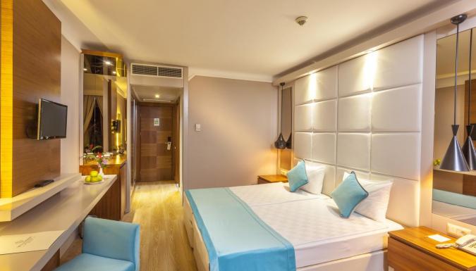 В номерах представлено: центральный кондиционер (работает в зависимости от погодных условий), мини-бар (вода - ежедневно, прохладительные напитки при заезде), спутниковое ТВ с российским каналом, музыкальный канал, радио, прямой телефон, Wi-Fi, душ или ванна, фен, сейф (платно), балкон, дополнительная раскладная кровать (по запросу).