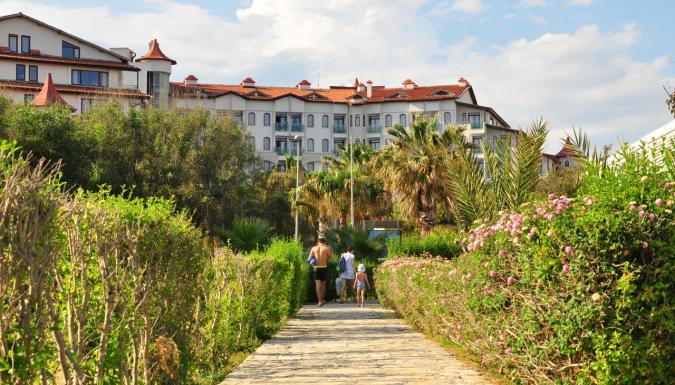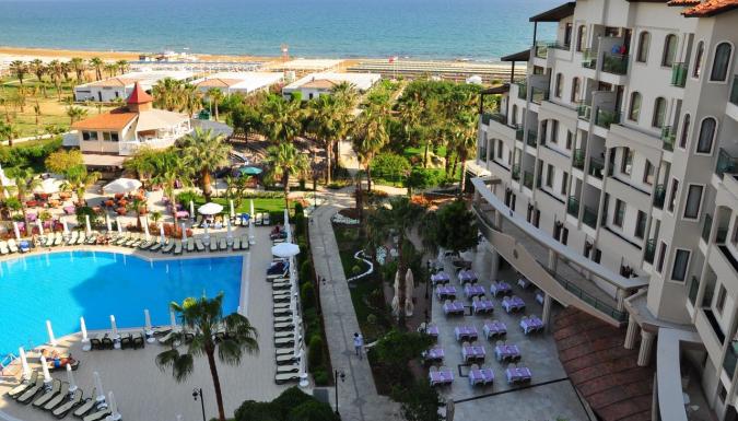 Отель расположен в п.Чолаклы, в 12 км от г. Сиде. Аэропорт Анталии находится в 55 км от отеля.