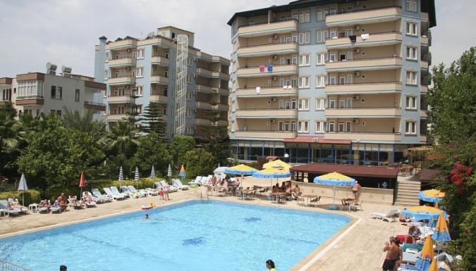 Отель в 120 км от аэропорта г. Анталья, в 1,5 км от центра г.Аланьи, в 800 м от пляжа Клеопатра.