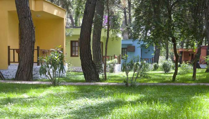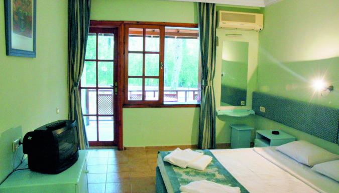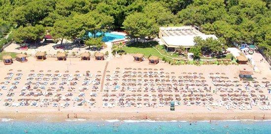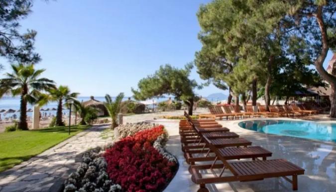 Отель в 70 км от аэропорта г. Анталья, в 15 км от г. Кемер, в посёлке Текирова, на берегу моря.