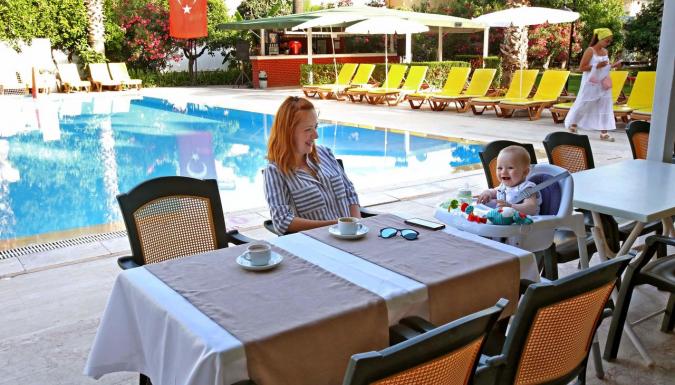 Отель расположен на 2 линии, расстояние до Кемера 6 км, до центра Антальи 45 км, до аэропорта: 55 км.