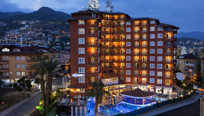 Отель Villa Moonflower Aparts & Suites расположен в центре Аланьи на территории 8000 кв. м. Отель был построен в 1998 году, имеет в наличии 79 номеров на 315 мест. В отеле есть в наличии один большой бассейн, один аквапарк и один детский бассейн. Отель находится в центре города, вблизи торговых центров и самого большого рынка фруктов и овощей.