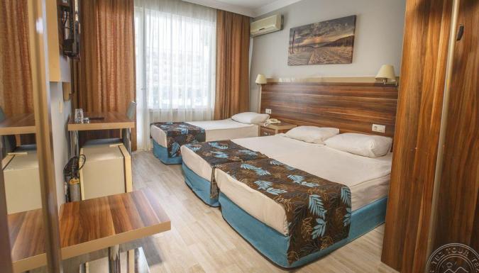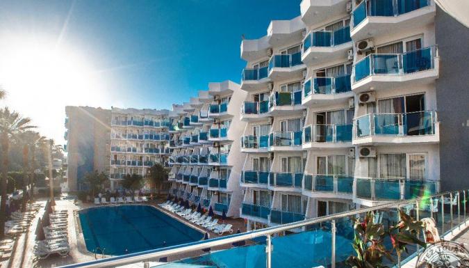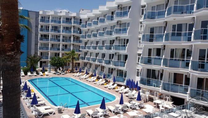 Отель в 90 км от аэропорта г. Анталья, в 30 км от г. Аланья, в поселке Окурджалар, в 120 м от собственного пляжа через дорогу.