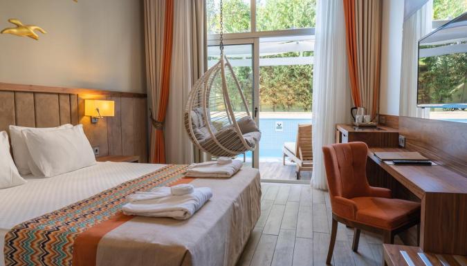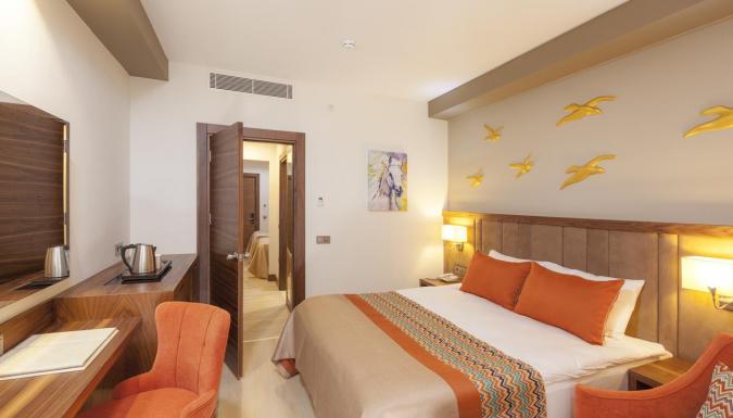 Отель в 58 км от аэропорта г.Анталья, в 7 км от центра г. Сиде, в 250 м от собственного пляжа.