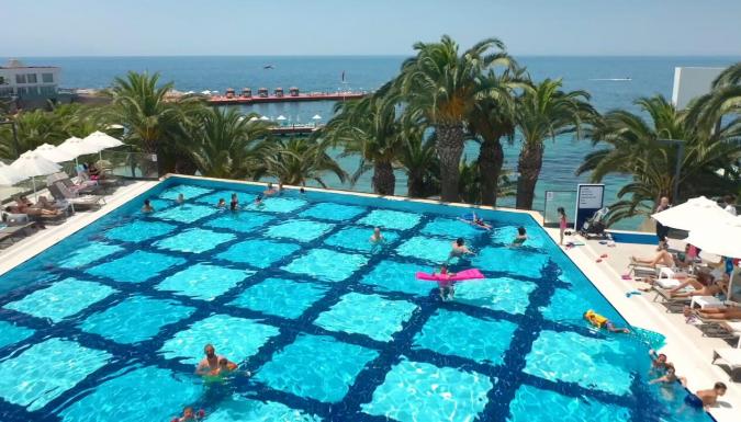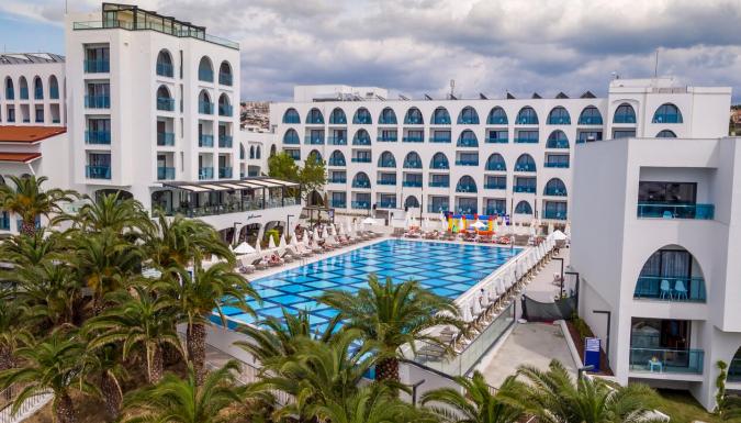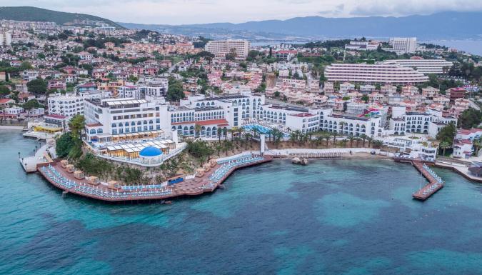 Отель в 75 км от аэропорта г. Измир, в 3 км от центра г. Кушадасы, в 18 км от античного города Эфес, на берегу моря.