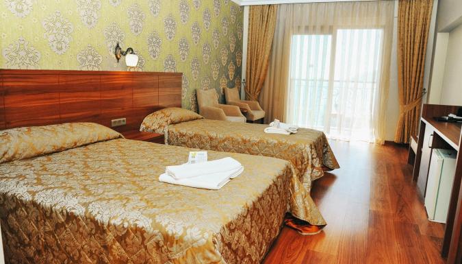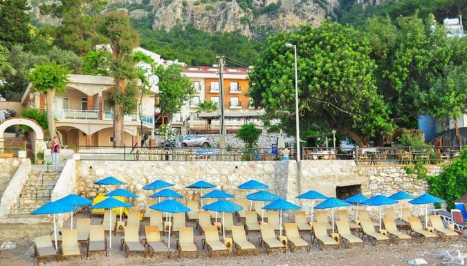 Собственный песчано-галечный пляж находится в 30 м от отеля, через дорогу. Шезлонги и зонтики - бесплатно, пляжные полотенца - платно.