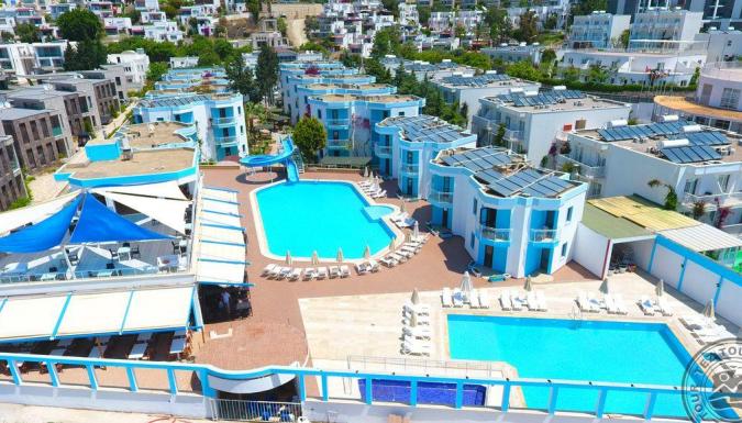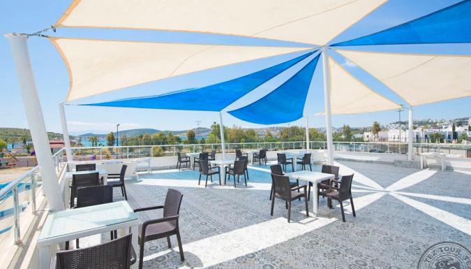 Отель расположен в 35 км от аэропорта в 3 км от центра Бодрума, в поселке Гумбет, в 75 м через дорогу от моря.