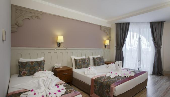 Отель Side Crown Serenity располагается в 11 км от гавани Сиде и от Театра Сиде, тогда как расстояние до аэропорта Антальи составляет 44 км.