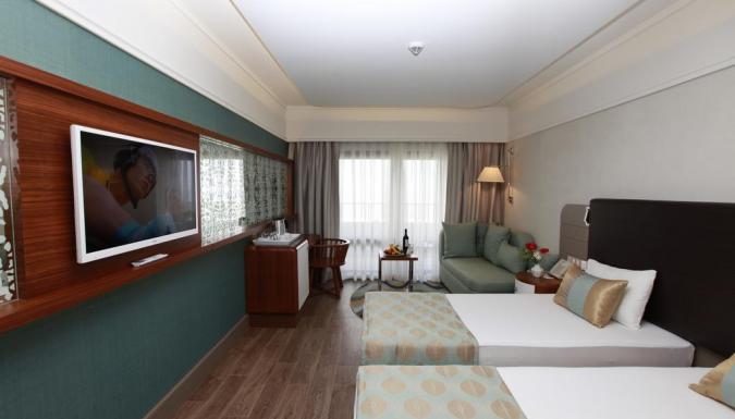 Главный ресторан (интернациональная кухня, крытый, с террасой), А’la carte ресторан (открыт 15.05-15.10) - средиземноморская кухня, Бар на пляже, бар около бассейна, бар в лобби отеля, Wi-Fi (платно), 3 открытых бассейна, магазин, терраса для загара, амфитеатр, кафе / бар, открытый бассейн, конференц-зал / банкетный зал, автостоянка, прачечная, парикмахерская / салон красоты, врач, удобства для людей с инвалидностью, номера для некурящих,