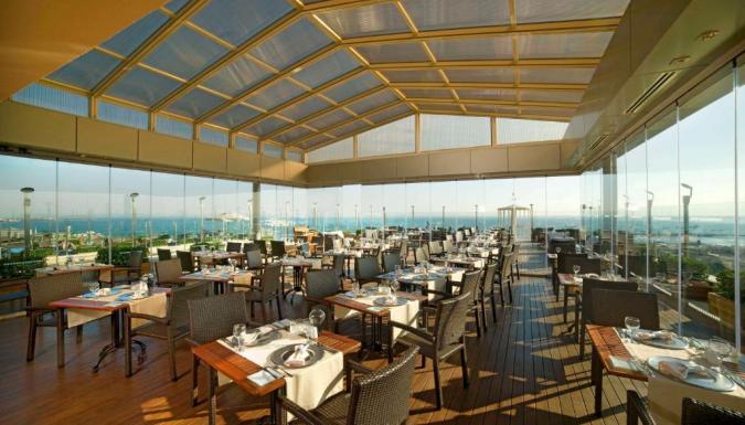 - С террасы на крыше отеля, а также из крытого бассейна открывается панорамный вид на Мраморное море.