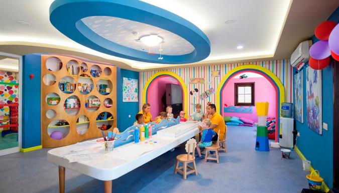 Детская площадка, Водные горки, Детский клуб, Детская кроватка в номере, Детский бассейн, Меню для детей, Няня, Стульчик для грудничков, Игровая комната