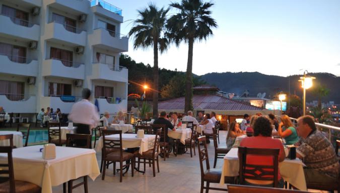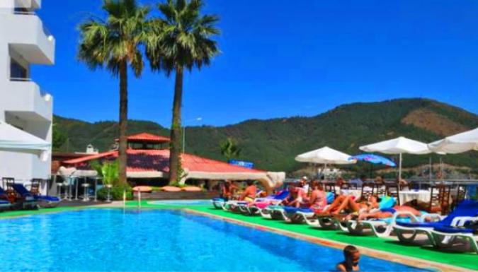 Один 6-тиэтажный корпус.Территория: 2 ресторана, 2 бара, магазин, TV-салон, открытый бассейн, детский бассейн, услуги врача (по вызову). Развлечения и спорт: бесплатно - шоу-программы, (3 раза в неделю). Платно - водные виды спорта.