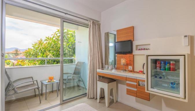 Бесплатные туалетно-косметические принадлежности, Туалет, Ванна или душ, Полотенца, Тапочки, Фен, Туалетная бумага, Белье, Шкаф или гардероб, Кофеварка/чайник, Мини-бар, Кондиционер, Сейф, Гладильные принадлежности, Утюг, Отопление, Электрический чайник, Телевизор, Телефон, Спутниковые каналы, Телевизор с плоским экраном, Балкон, Мебель на улице, Розетка около кровати