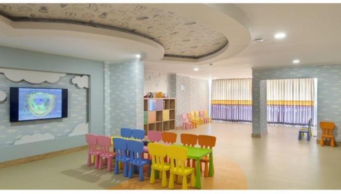 детский клуб, ​​детская анимация, детская игровая площадка, детская кроватка, высокие стульчики в ресторане, детский горшок (по запросу), детская коляска (по запросу)