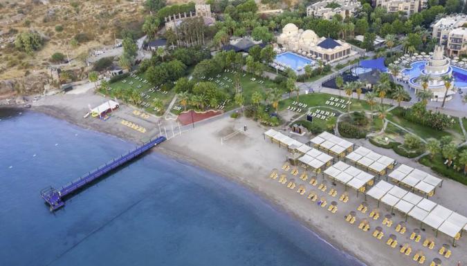 Шикарный отель на самом берегу моря, предлагает гостям открытые бассейны, SPA-центр с турецкой баней и сауной, круглосуточное питание по концепции «Ультра всё включено», а для маленьких гостей открыт мини-клуб. Отель находится в 18 км от центра г. Бодрум, в 55 км от аэропорта г. Бодрум. Номера оборудованы ТВ с плоским экраном, кондиционером и холодильником, гости могут в любой момент быть онлайн благодаря бесплатному Интернету. Здесь вы сможете хорошо отдохнуть и восстановить свои силы