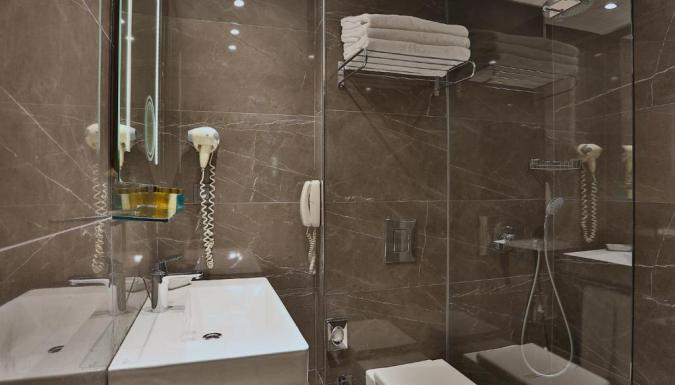 Во всех номерах есть плазменный телевизор со спутниковыми каналами, мини-бар, телефон, бесплатный Wi-Fi и собственная ванная комната.