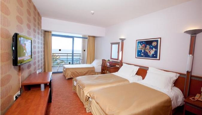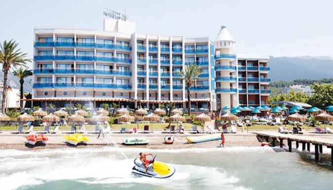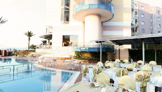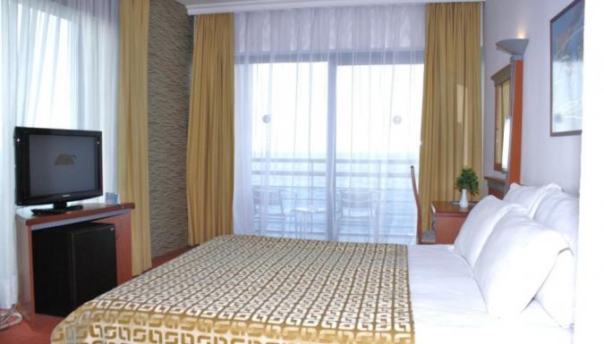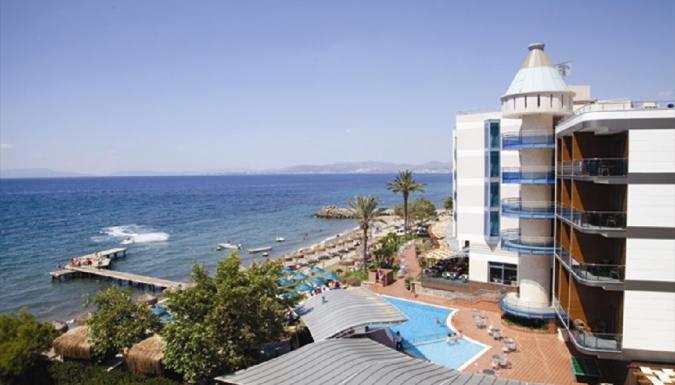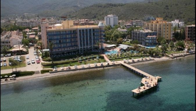 Один 5-этажный корпус. Имеет: 2 ресторана, 2 бара в отеле, лифт, 2 открытых бассейна( детский и взрослый), конференц-зал. Бесплатно: анимация, телевизионный салон, игровой зал. Платно: сейф, сауна, услуги няни, парикмахерская, медицинское обслуживание, интернет, прачечная,теннисные корты, сквош, настольный теннис,бельярд, мини-футбол, волейбол, дартс, виндсерфинг, каное, катание на банане, водный мотоцикл. Пляж: галечный, душ, собственный пирс с лестницами к воде, шезлонги, зонты.