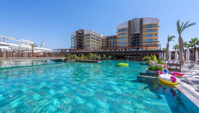 Akadia Luxury Sorgun - Adults & Couples Only - Ultra All Inclusive by LRS Hotels — это отель, расположенный в городе Сиде. К услугам гостей сезонный открытый бассейн, фитнес-центр, сад и частный пляж. В числе удобств — общий лаундж и ресторан, а также аквапарк и терраса. Гости могут обратиться к сотрудникам круглосуточной стойки регистрации, воспользоваться трансфером от/до аэропорта или доставкой еды и напитков, а также подключиться к бесплатному Wi-Fi.