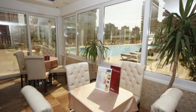 Питание ALL INCLUSIVE (до 22:00) включает: завтрак, обед и ужин (шведский стол), закуски, чай/кофе, выпечка, все алкогольные и безалкогольные напитки местного производства. Импортные напитки, вина в бутылках, свежевыжатые соки, турецкий кофе, напитки на дискотеке, мороженое - платно. Предлагается диетическое и вегетарианское меню.