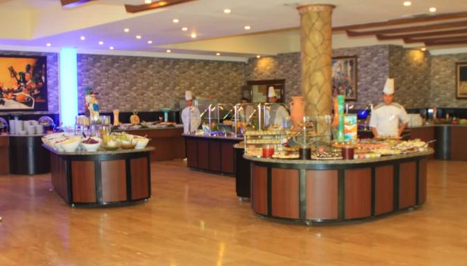 В ресторане предлагаются национальные и международные блюда по типу «шведский стол». В барах отлично освежиться коктейлем, отведать легкие закуски и свежую выпечку. Вечером, сидя в снэк-баре у бассейна, можно выпить бокал вина и полюбоваться феерическим зрелищем шоу-программ!