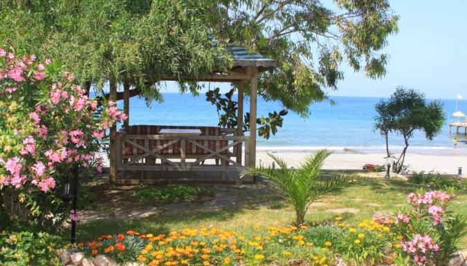 Находится в 5 км от центра курорта Аланья, в тихом и живописном поселке Кестел, прямо на великолепном пляже.