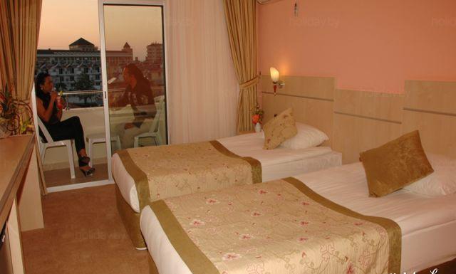 Отель был открыт в 2007 году. Общая площадь территории - 2 500 кв. м. Собственный песчаный пляж отеля находит через дорогу, в 100 м от него. Шезлонги, матрасы и зонтики - бесплатно. Водные виды спорта на пляже платно. Имеются открытый и закрытый бассейны, а также бассейн для детей. Шезлонги, матрасы, зонтики - бесплатно. Спорт в отеле: настольный теннис. К услугам отдыхающих - турецкая баня, сауна, массаж, пилинг, а также парикмахерская. Питание ALL INCLUSIVE (10:00 – 23:00) подразумевает: завтрак, обед, ужин (шведский стол), алкогольные и безалкогольные напитки местного производства, поздний завтрак, полдник, закуски. Есть 2 открытых и закрытый ресторан, а также ресторан a la carte и бар. Для детей в ресторанах можно воспользоваться специальными детскими креслами. Развлечения: анимация. Для детей: можно воспользоваться услугами няни. Прочие услуги: рецепция; прокат автомобилей; прачечная; химчистка; магазины; холл.