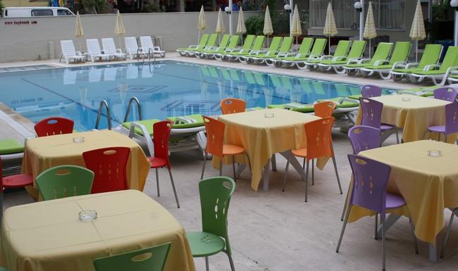 Отель построен в 1998 году. Отель BEYKONAK - это два 4-этажных здания с балконами, декорированные в бело-зеленых тонах. В отеле есть ресторан и бар. На территории отеля есть взрослый и детский бассейны.