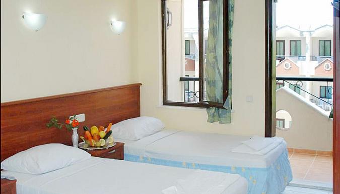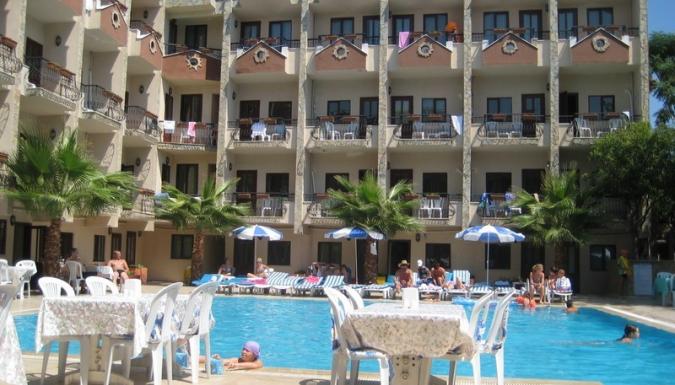 Отель открыт в 1996 году. Площадь отеля 1400 кв м. Один двухэтажный корпус. Пляж: собственный галечный пляж в 2 км от отеля, городской пляж - в 500 м от отеля; зонтики, шезлонги, матрасы - бесплатно, на городском пляже - платно; душ, кабинки; каждый час до пляжа предоставляется микроавтобус. Территория: 1 открытый ресторан, бар, снек-бар, открытый бассейн, детский бассейн, врач (платно). Развлечения и спорт: бесплатно - настольный теннис, бильярд, дартс. Платно - водные виды спорта. Питание All inclusive - все включено: завтрак, обед, ужин - шведский стол, закуски, алкогольные и безалкогольные напитки местного производства; с 10:00 до 23:00 ч.